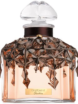 Within the "Les Quatre Saisons" collection, born from an exceptional collaboration between Maison Guerlain and artist Janaïna Milheiro, the bottle dedicated to Autumn is wrapped in a dazzling foliage of pheasant feathers. This unique set adorns the iconic Quadrilobé bottle in Baccarat crystal for a limited and numbered edition.